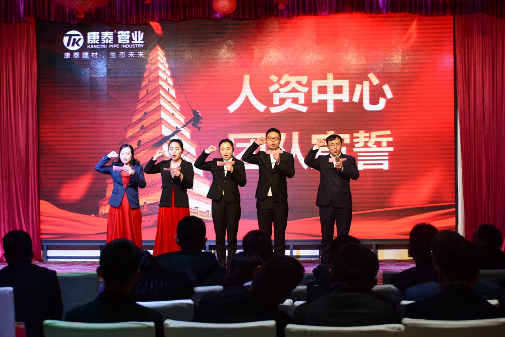 13時(shí)許,會(huì)議在雄壯嘹亮的《國(guó)歌》和《康泰之歌》中正式啟幕。大會(huì)共有五項(xiàng)議程分別是,對(duì)2018年的工作總結(jié)暨2019年度經(jīng)營(yíng)規(guī)劃、表彰2018年度先進(jìn)個(gè)人和集體、舉行迎春文藝匯演、母公司各中心宣誓、聽(tīng)取董事長(zhǎng)對(duì)2019年的總體規(guī)劃和展望。